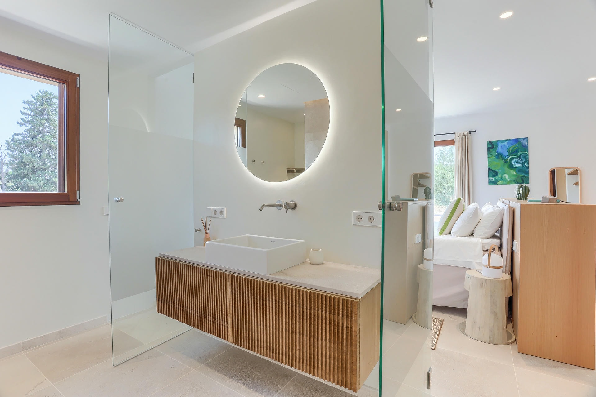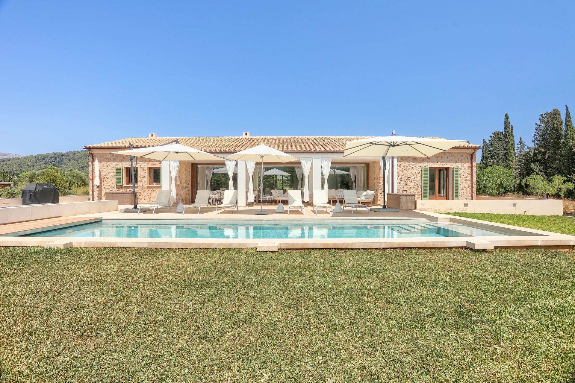 Ca Na Gabriela es una gloriosa villa de nueva construcción ubicada en el impresionante campo a las afueras del encantador pueblo de Campanet, (a 15 minutos en coche de Pollensa y 30 minutos de Palma).