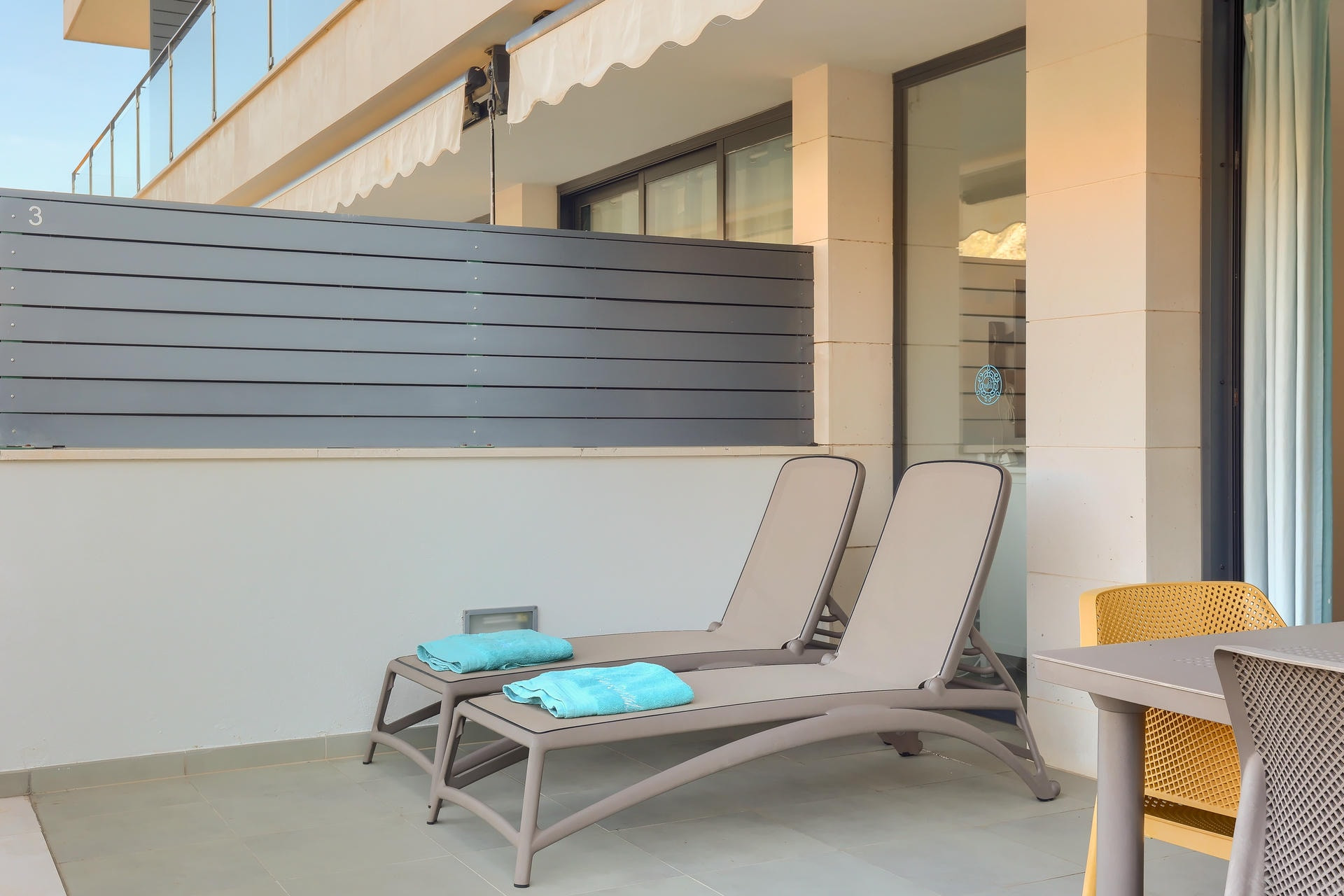 El apartamento tiene tres dormitorios, 1 doble, 1 de dos camas y una habitación con literas. Hay 2 baños, 1 en suite para la habitación principal y un baño compartido. También hay una lavadora y una terraza para secar la ropa y las toallas de playa.