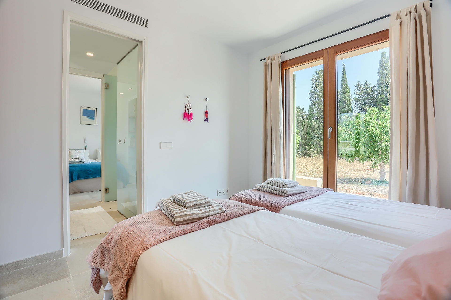 Built on one floor, the villa has four large bedrooms. Two are sumptuous doubles, both ensuite, one of which has a bath. The two twin rooms share a bathroom.