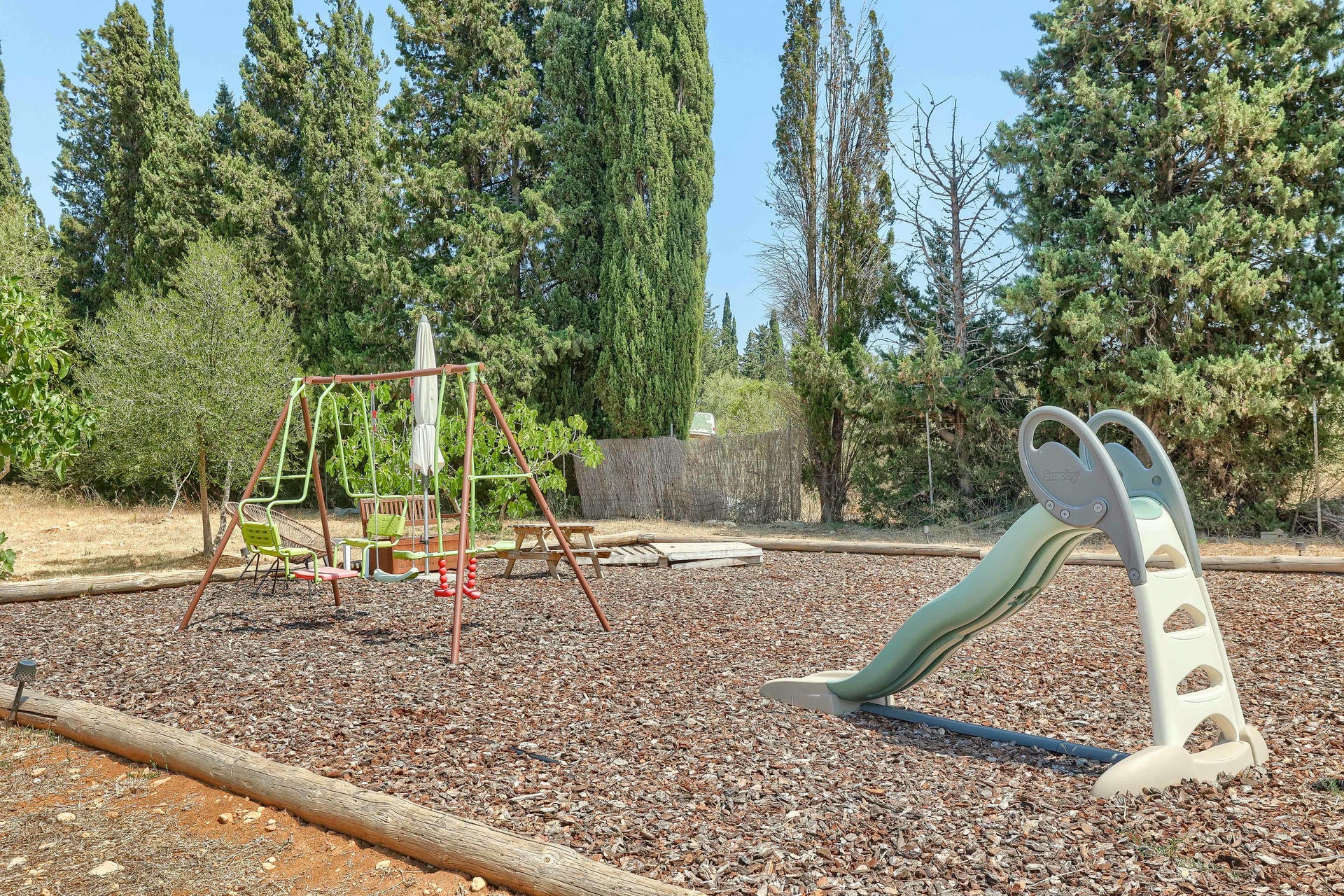 The outdoor space ticks every box. Huge pool, lots of outdoor seating, a beautiful covered outdoor dining area. Plenty of sun loungers and parasols. There is even a child’s playground.