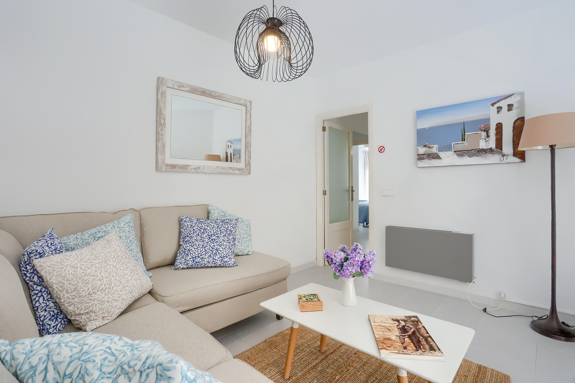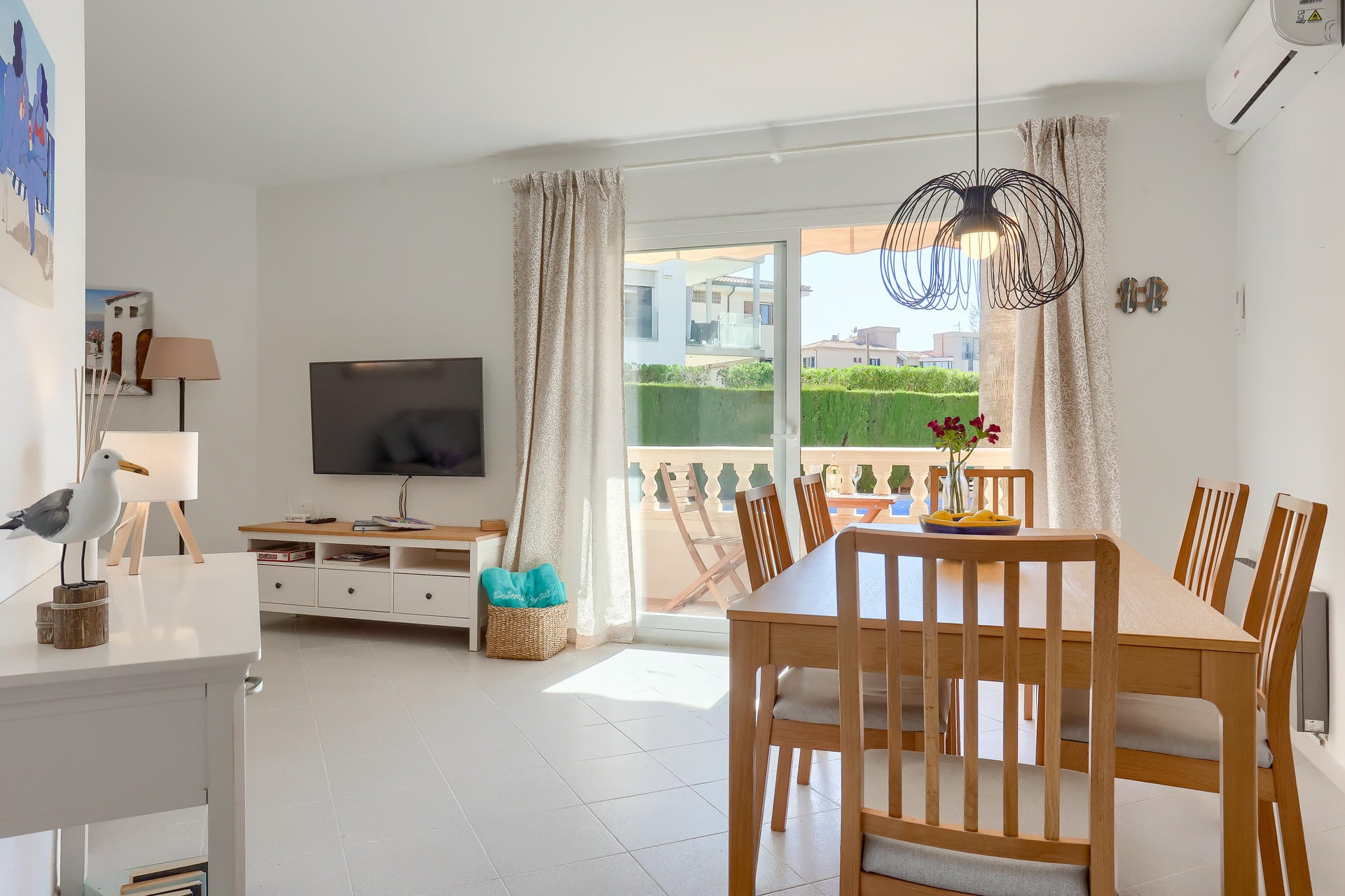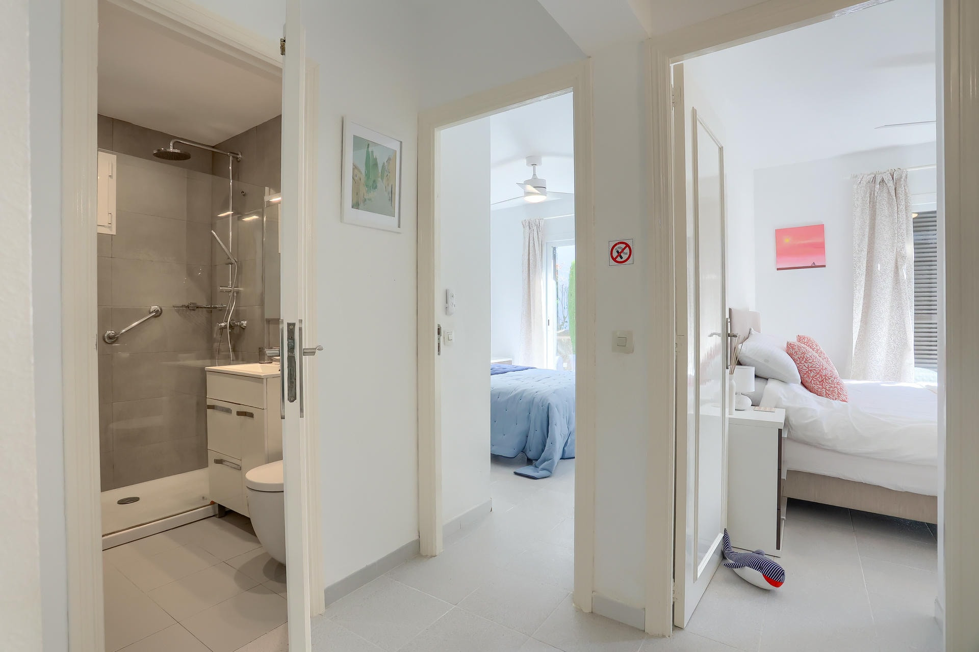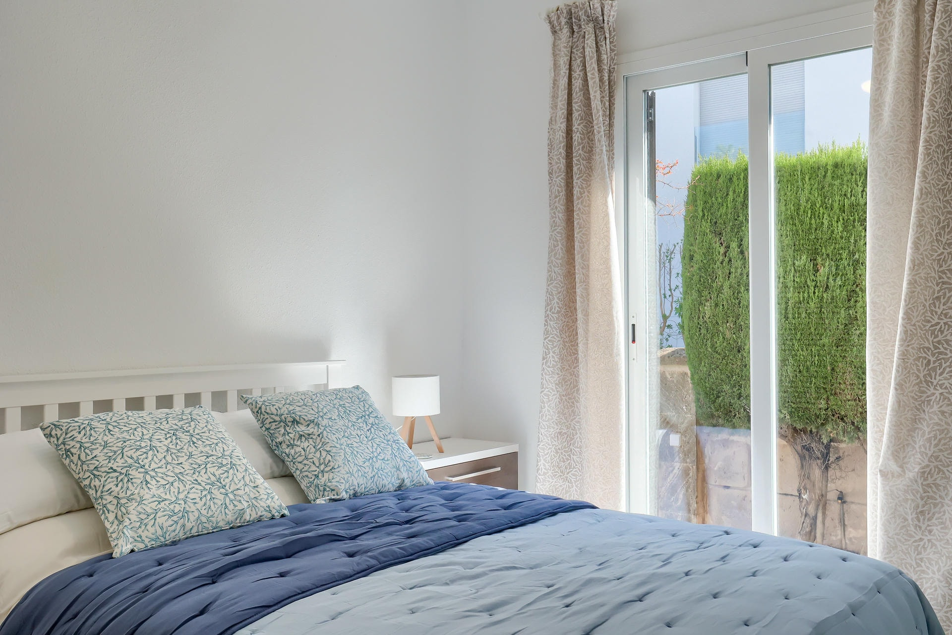 This ground floor apartment has a communal pool and is in a peaceful neighbourhood, and just a 2 minute walk to Llenaire beach.