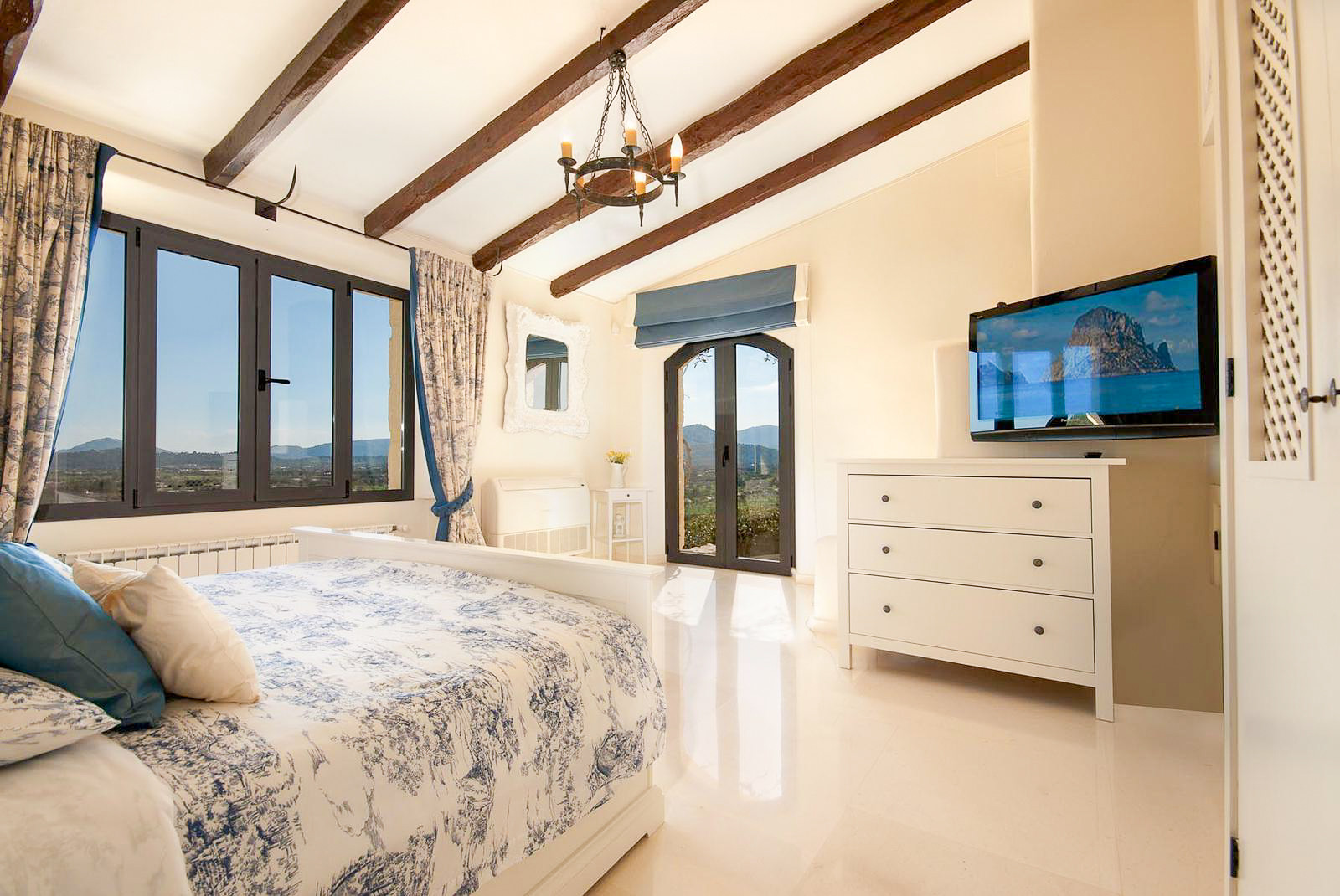 There are four large bedrooms: a double bedroom with a 160cm bed and an en-suite bathroom; a standard double bedroom with a 140cm bed and an en-suite bathroom; a double bedroom with a 180cm bed and a bedroom with twin beds. These two bedrooms share a bathroom. There is also a fifth bedroom on the lower floor next to the pool which has a lovely, contemporary en-suite bathroom and would be just perfect for grandparents.